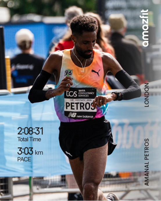 amazfit Cheetah 2 Pro助力多位专业跑者在马拉松赛事中斩获佳绩。amazfit运动员Amanal Petros在伦敦马拉松佩戴Cheetah 2 Pro以2小时08分31秒完赛。