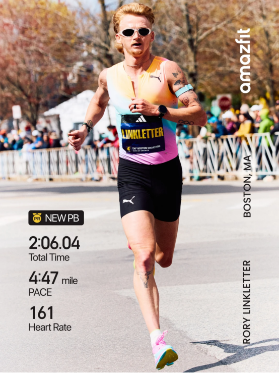 Rory Linkletter在波士顿马拉松使用Cheetah 2 Pro记录下个人PB:2小时06分04秒。
