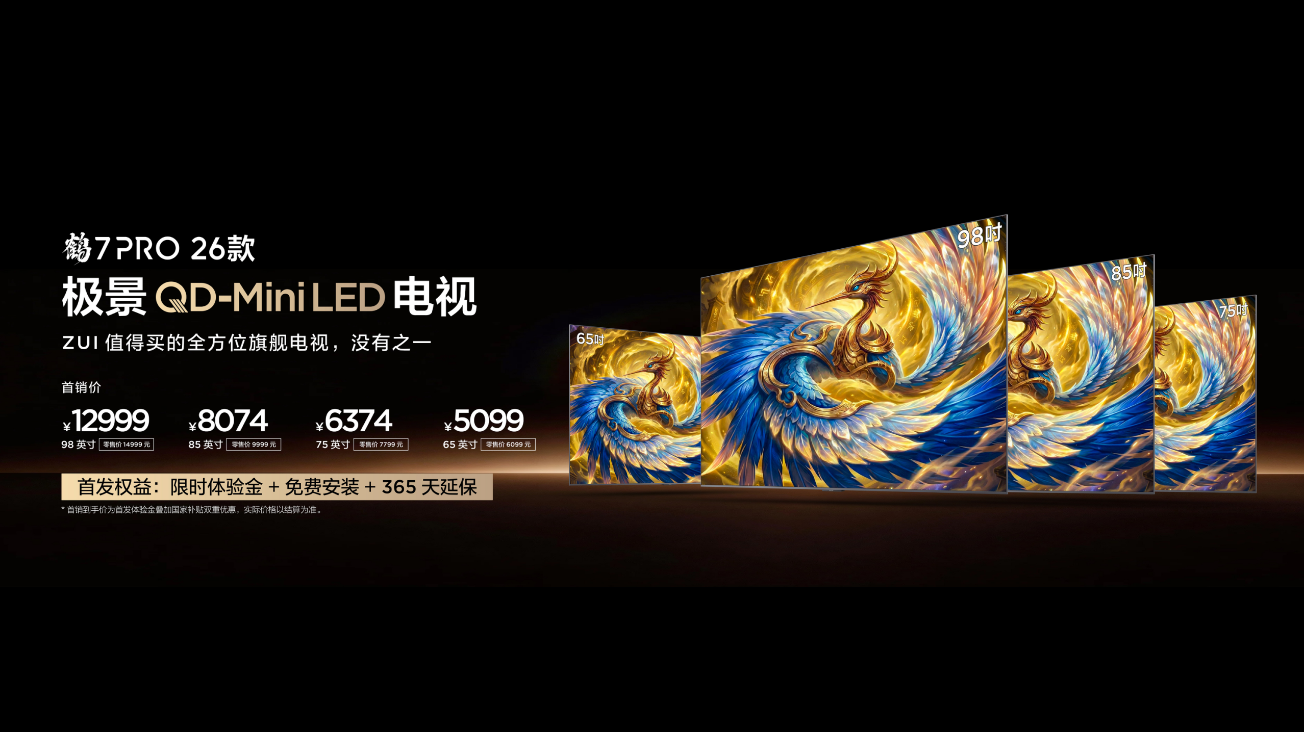 这场“技术平权”运动最终落笔在价格上。叠加国家补贴与首发体验金后,鹤7 Pro 26款各尺寸段的最终售价为:65英寸5099元、75英寸6374元、85英寸8074元、98英寸12999元。横向对比行业同类MiniLED旗舰产品,这一价格体系直接将高端显示技术的准入门槛拉低了30%以上。