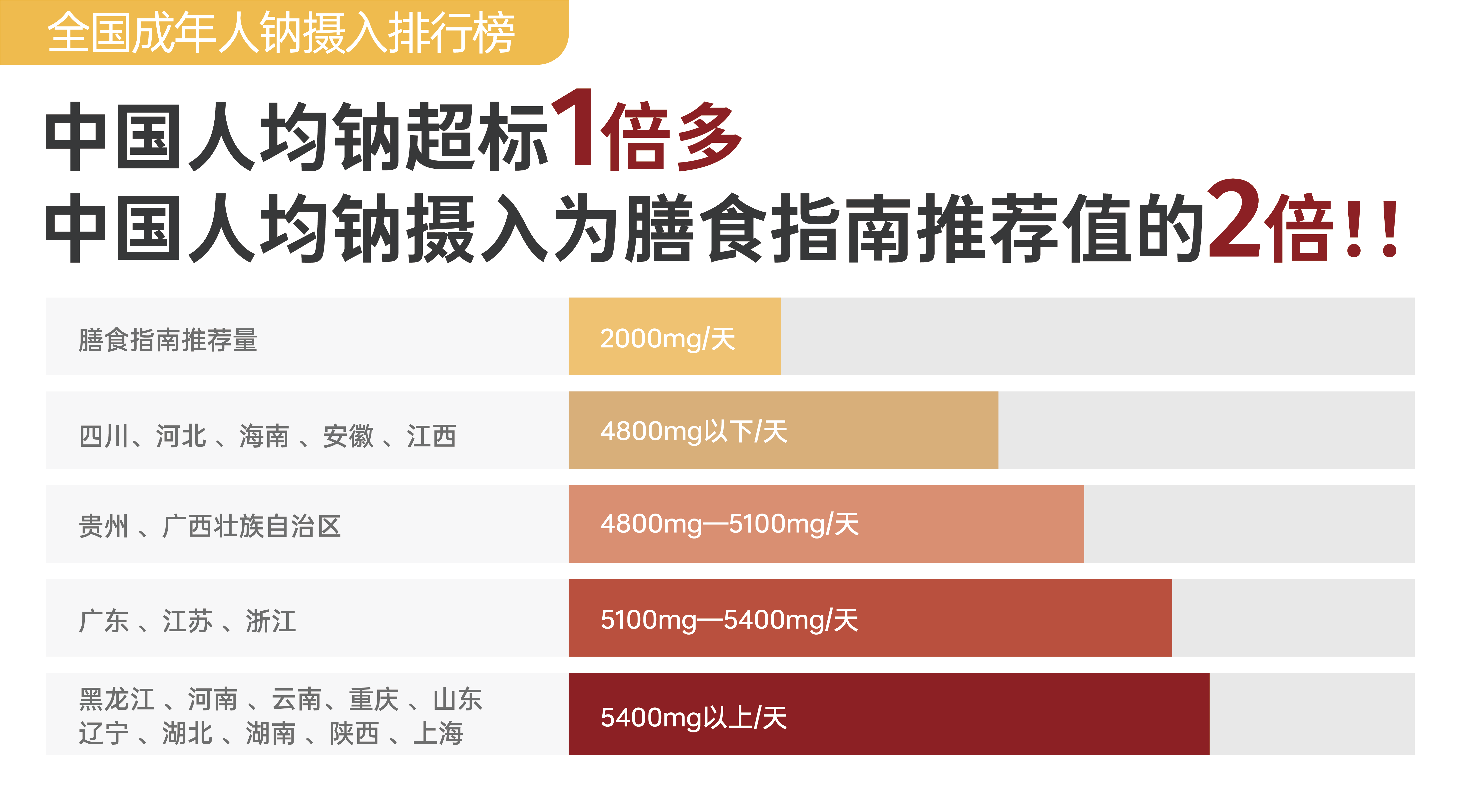 世界卫生组织指出,高钠饮食带来的主要健康危害包括血压升高,增加患心血管疾病、胃癌、肥胖症、骨质疏松症、梅尼埃病和肾脏疾病的风险,因此,减少钠摄入,已成为全球公共卫生领域慢性病防治的重要举措。