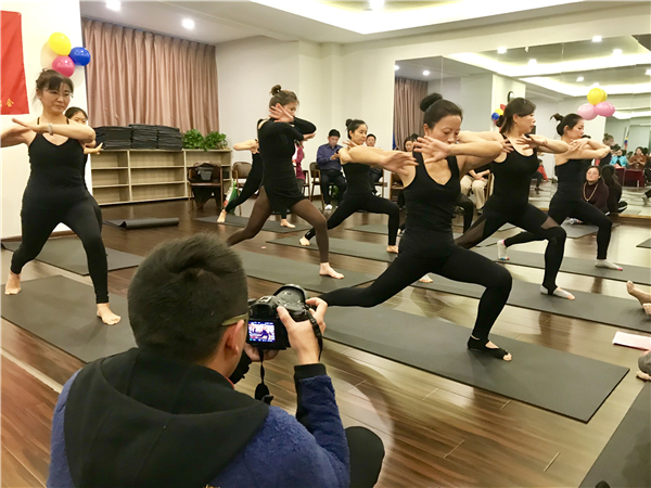 声动淮安阅读会主席、淮安人民广播电台金牌主播华中老师现场深情朗诵《瑜伽就是生活中的诗和远方》,让大家沉醉其中。同时,华中老师阐释了瑜伽的真正含义就是能使人修身养性,锻炼身体柔韧性,提升身体素质,让大家对未来的品质生活充满向往和期待。