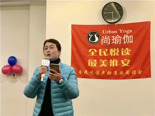 尚瑜伽总经理樊丽萍首先致欢迎辞,她说:“尚瑜伽是淮安市首家超大规模的最专业的瑜伽会馆,主要致力于推广健康、科学、安全的瑜伽练习理念。声动淮安阅读会愿景远大,让尚瑜伽成为声动淮安阅读会的基地,这是我的心愿,所以我非常感谢!”
