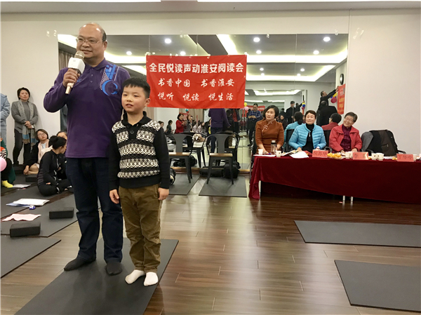 声动淮安阅读会的艺术总顾问、淮安人民广播电台德高望的老艺术家李莉老师、倪苏华老师分别朗诵了《卜算子·咏梅》、《把碗让给母亲洗》,专业的朗诵风格给大家带来绝美的艺术享受。其间,四位小朋友积极踊跃的表演让整场活动笑声不断。瑜伽教练现场表演并带领大家亲身体验,让大家受益匪浅。