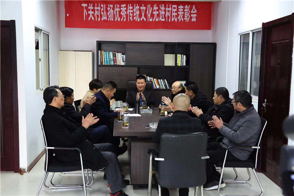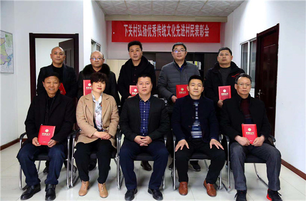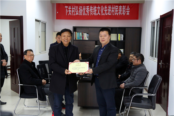 接着,贾武强为弘扬下关优秀传统文化先进村民黄锦标、陈定国、张万松、江崇其、吴云平、陈勇、陈月松、王爱兵一一颁发荣誉证书,最后他说:看到一个村,有这么多位村民在坚守传统,延续文化,不忘初心,牢记乡愁,并取得了显著的成绩,难得可贵,令我感动。说明下关村两委战斗力强,下关民间文化力量强。同时我希望,按照下关村目前具备的各项基础实力,再进一步聚焦下关文化特色,做出属于自己的文化品牌,具有一定的可行性。(完)