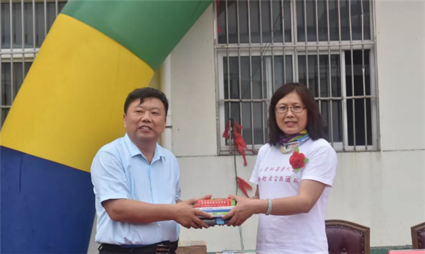 北外领队尤晓杰老师在讲话中表示,将“不忘初心,牢记使命”,以实际行动影响吴中同学,一起为“两个一百年”奋斗目标撸起袖子加油干,把吃苦耐劳、勇于奉献的精神传承下去。北外领队周世梅老师代表北外“歆语工程”淮安实践团向吴承恩中学徐从玉校长捐赠了图书。