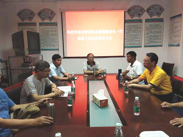 仁风义雨润名镇,高手行家传好经。2019年7月8日,淮安市政协原副主席、淮安市诗词协会会长荀德麟,常务副会长周桂峰、蔡小军,副秘书长兼办公室主任钱万平一行,在淮安区诗协常务副会长兼秘书长卢顺贞、副会长陈定国的陪同下,应邀来到淮安区淮城街道下关社区,调研指导正在建设中的“仁义下关主题文化小区”楹联撰写开展进度工作。