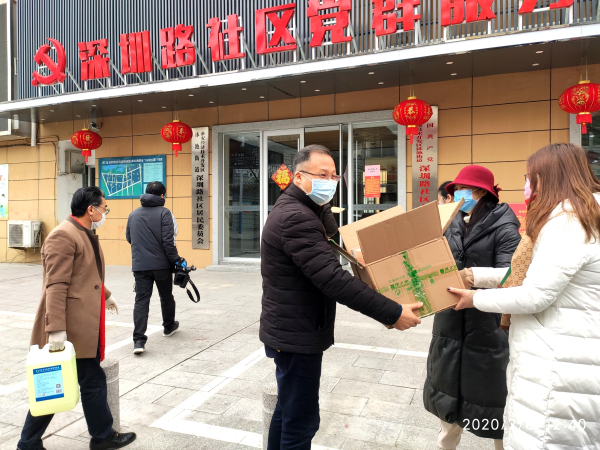 当前正值防控新型冠状病毒感染的肺炎疫情的关键时期,当得知一些社区消毒酒精等医疗防护物资紧缺时,2月6号上午,声动淮安阅读会主席华中、总艺术顾问李莉、副秘书长周大拿,带领健康中国•幸福家庭工程服务中心淮安店爱心人士栾文宇、高文进、邵永娟,幸福家工程引领者、素雅东方名誉院长陈素梅等,来到淮安市深圳路社区,向抗击疫情一线的工作者捐赠了一批保健产品及消毒用品,支援社区打赢这场疫情防控阻击战。