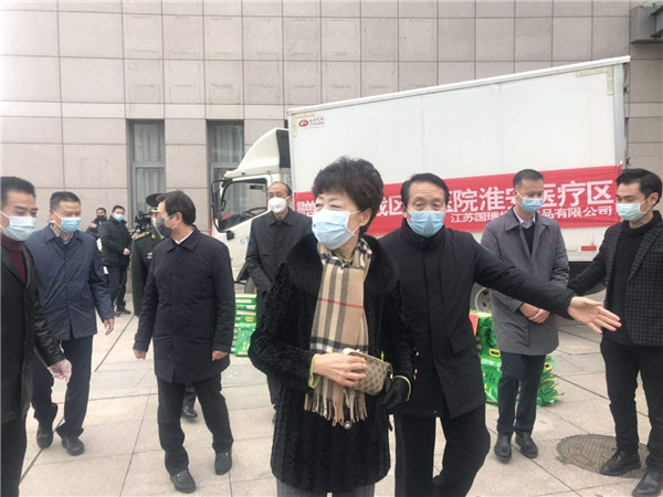 之后,金沙酒业江苏区域负责人郑利一行得知淮安市中医院有3名医生赴武汉黄石参加救助、20多名医生抽调参加淮安市当地抗击新型冠状病毒感染的肺炎救治,深受感动,在淮安市爱国拥军协会名誉会长、原淮安市副市长陆长苏带领下,赶到中医院,向市中医院再一次捐赠生活和医疗消毒物资五万元,淮安市中医院党委书记、院长叶朝晖接受金沙酒业人的爱心并代表全体医护人员表示感谢。