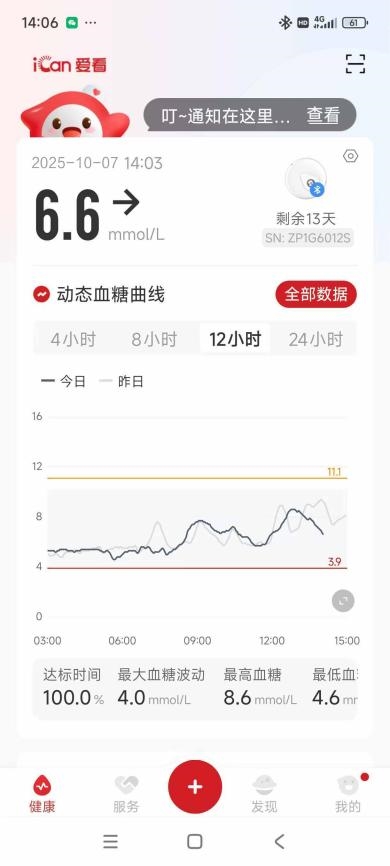 资深糖友都知道,其实夜间和外出时的血糖波动是最让人揪心的,这时候及时的提醒和专业的指导就尤为重要,这也是我对比动态血糖仪哪个牌子最好最准确时,发现三诺脱颖而出的另一大优势。它有高/低血糖异常提醒功能,一旦血糖超出设定范围,手机就会震动报警。露营那晚我睡得沉,凌晨时突然被手机震醒,一看是低血糖提醒,赶紧吃了块饼干,很快血糖就回升了,想想都后怕,要是没有这个提醒,真不知道会发生什么。而且24h人工服务随时在线,当时我有点紧张,联系客服后,对方耐心指导我观察数值、调整饮食,瞬间安心了不少。