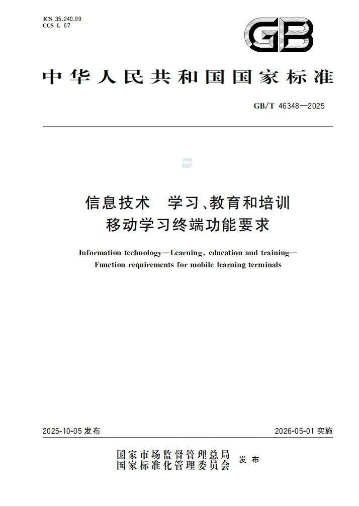 本标准对移动学习终端在通用功能、护眼性能、数据互通及多场景适配等方面提出了系统性要求,旨在确保其能满足多样化教育场景的应用需求。此标准将于2026年5月起正式实施,将为终端制造商的产品开发与教育机构的数字化方案设计提供权威依据,为构建科学、健康的移动学习环境奠定坚实基础。