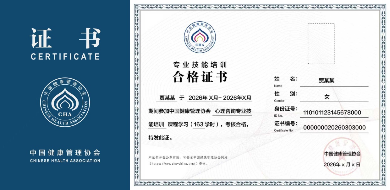 从证书专业认可度来说,心理咨询专业技能培训合格证书采用终身有效制,且实现“一证一码”,持证人可随时在中国健康管理协会官方网站查询证书信息,从根源上保障了证书的真实性与公信力,也体现了协会对培训质量的严格把控。