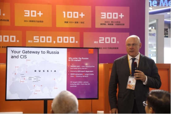 在第八届进博会上,ITE集团将其深耕俄罗斯市场逾三十载的深厚积淀,系统性地呈现为“展览+峰会+数字平台”的赋能生态。集团首席执行官Dmitry Zavgorodniy先生亲临现场,阐释了如何借助这一生态精准助力中国企业把握俄罗斯及独联体的商业机遇。该生态以展览为核心,构筑行业交汇点;以峰会为引领,凝聚行业领袖前沿洞见;以数字平台为延伸,实现全年无休的商机精准对接。ITE集团正通过这一多元立体的服务模式,重塑市场开拓的范式。